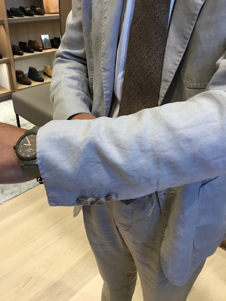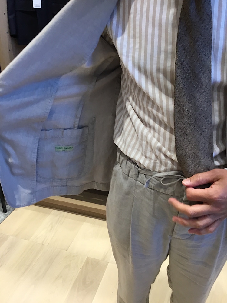 ジャケット・パンツ共に麻100%の生地を使用し、綺麗なドレープが出ます。