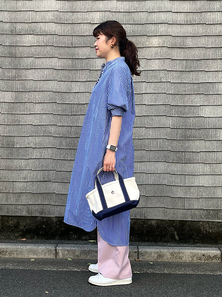 素材感/着心地:とろみ素材で着心地が良い。ウエストもゴムで締め付け感のないパンツ