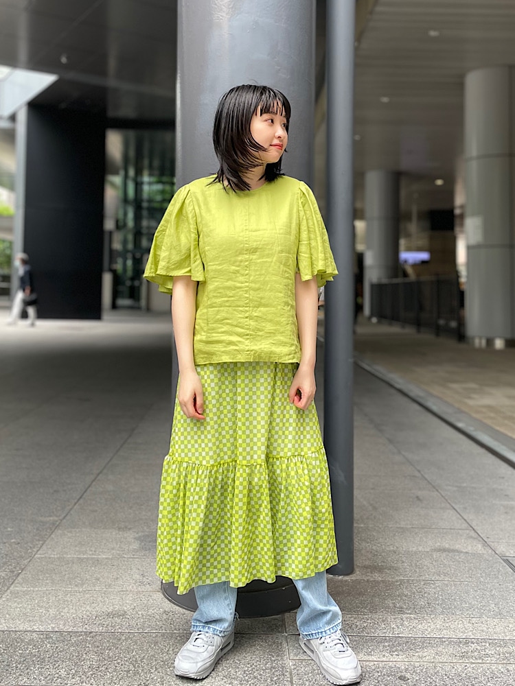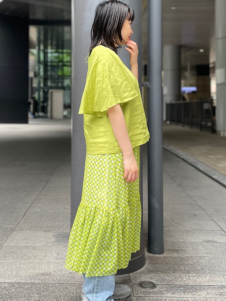 着心地:ツヤ、光沢のあるリネン生地がカジュアルな印象になりすぎず、きちんと見えも叶います。柔らかい生地ながらもハリがあり、体のラインを拾いすぎず程よく広がってくれるので、夏場も快適に着用頂けます。