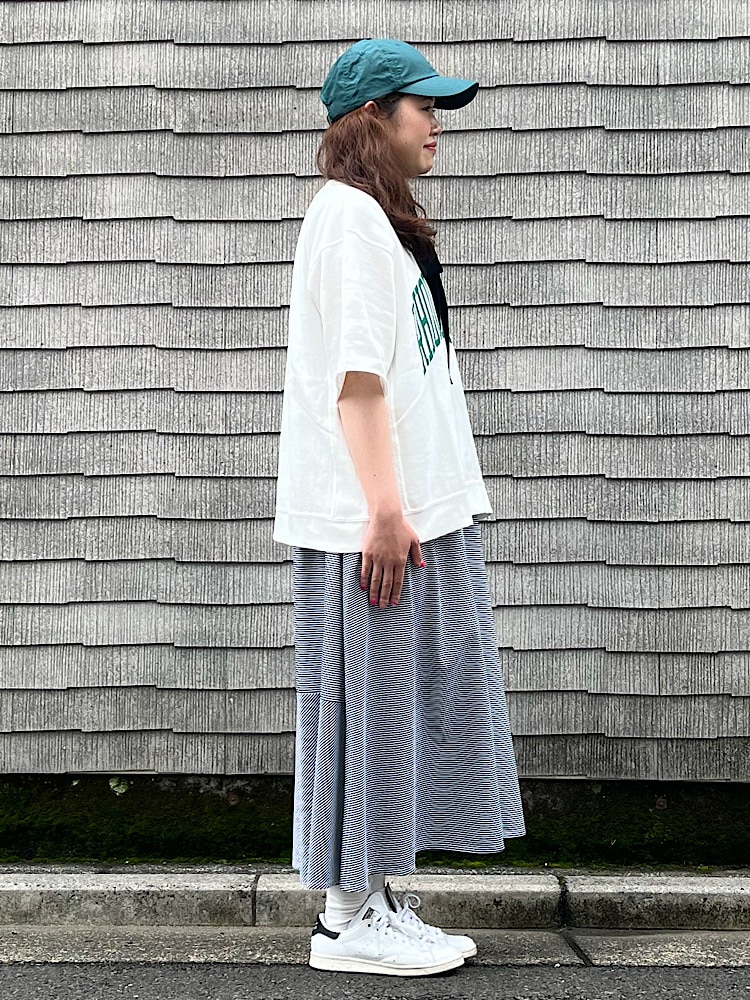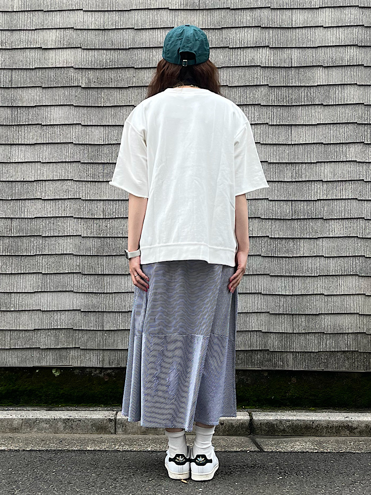 素材感/着心地:下に広がるAラインなので体型カバーもできる。サラっとしていて夏に活躍できそう