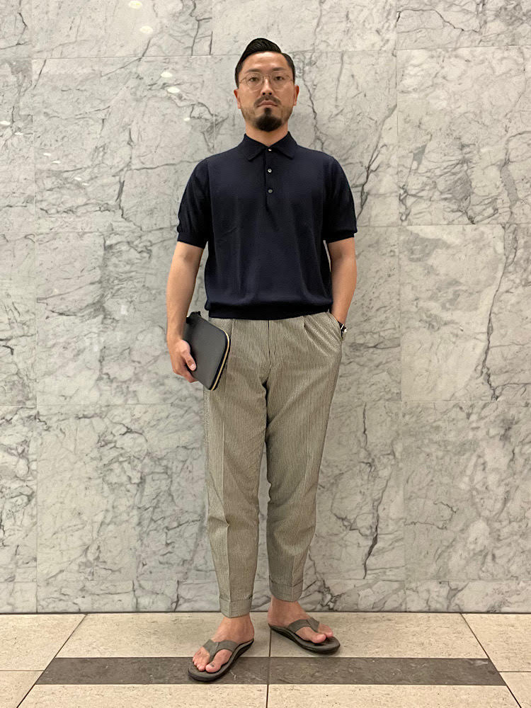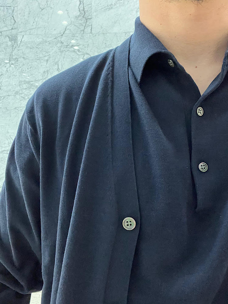 素材感/着心地:シーアイランドコットンを使用しており、滑らかな肌触り。ニットポロとアンサンブルで着用出来る