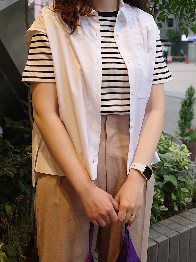 素材感/着心地:アームホールも広いので重ね着もできる。ハリがあって色んなシーンに使える