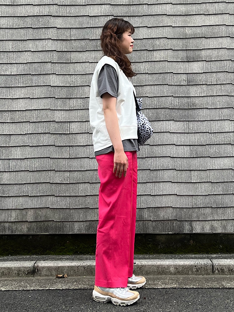 素材感/着心地:厚めのスエットで、オーバーすぎなく女性らしく着れるベスト