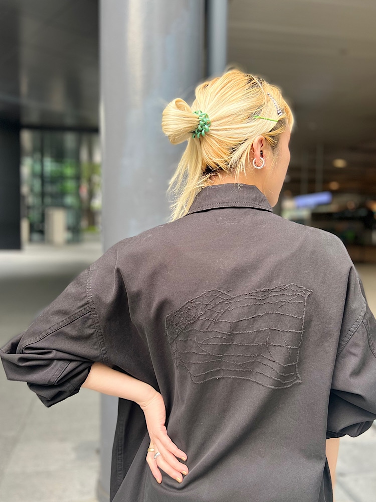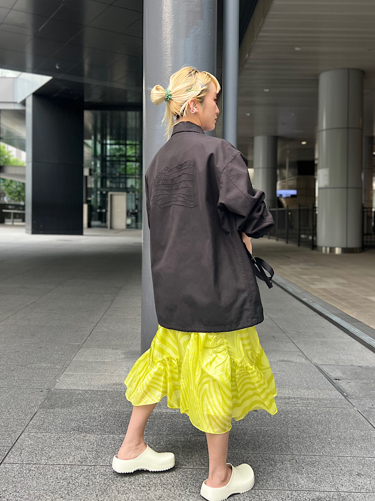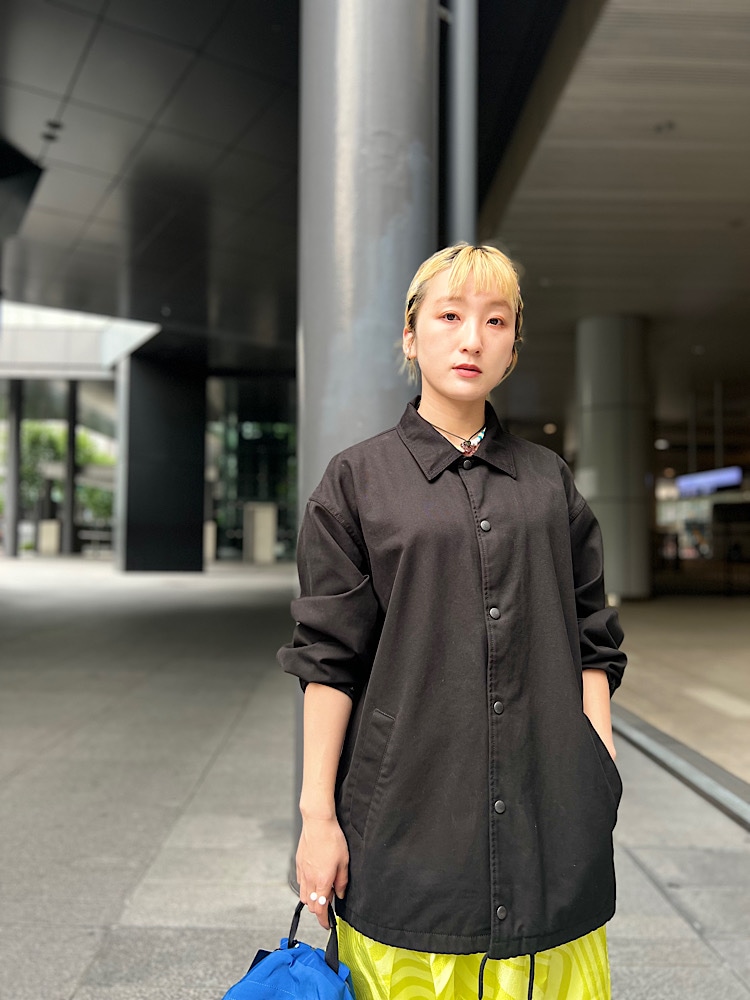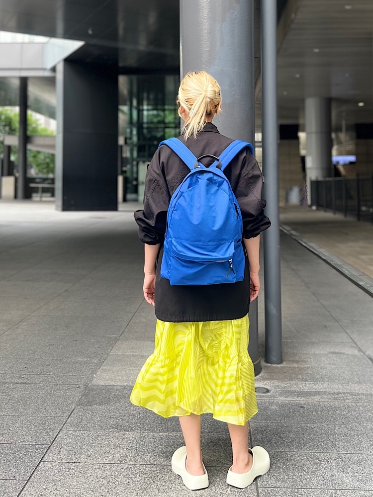 ・着こなしポイント : 少し甘いデザインなので、メンズのジャケットやリュックであわせてみました。夏はラフにTee合わせがおすすめです!