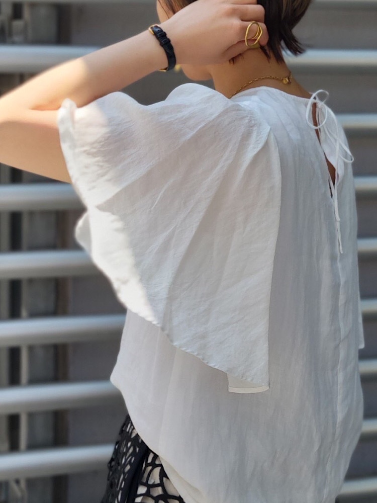 程よくゆとりあり。フレアスリーブなので、腕周りがスッキリみえします。