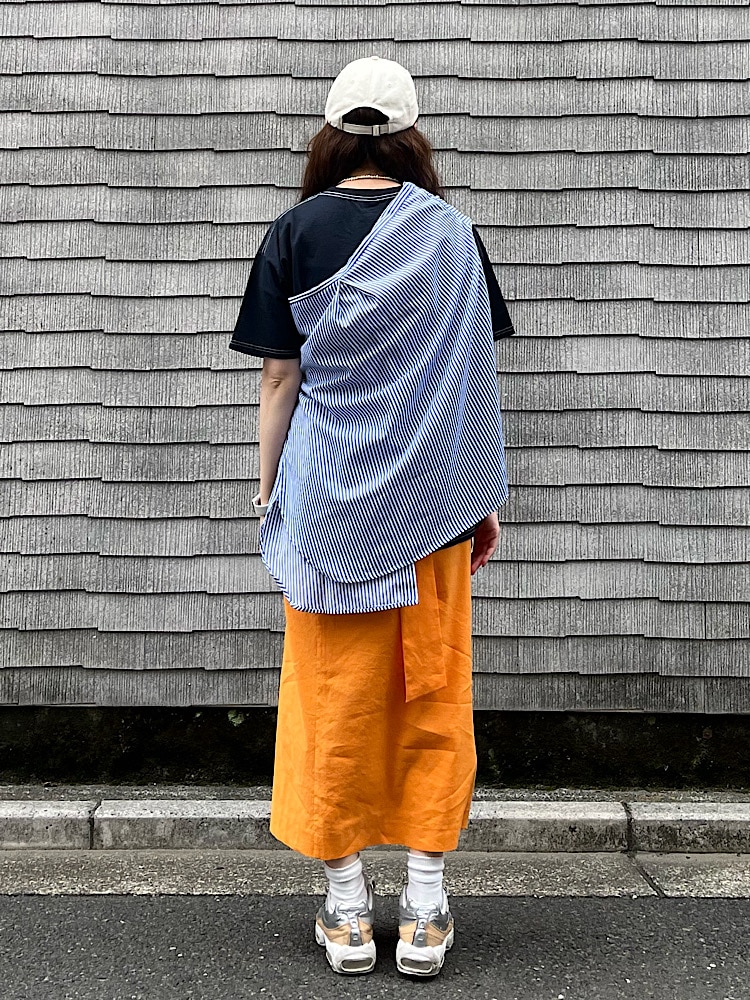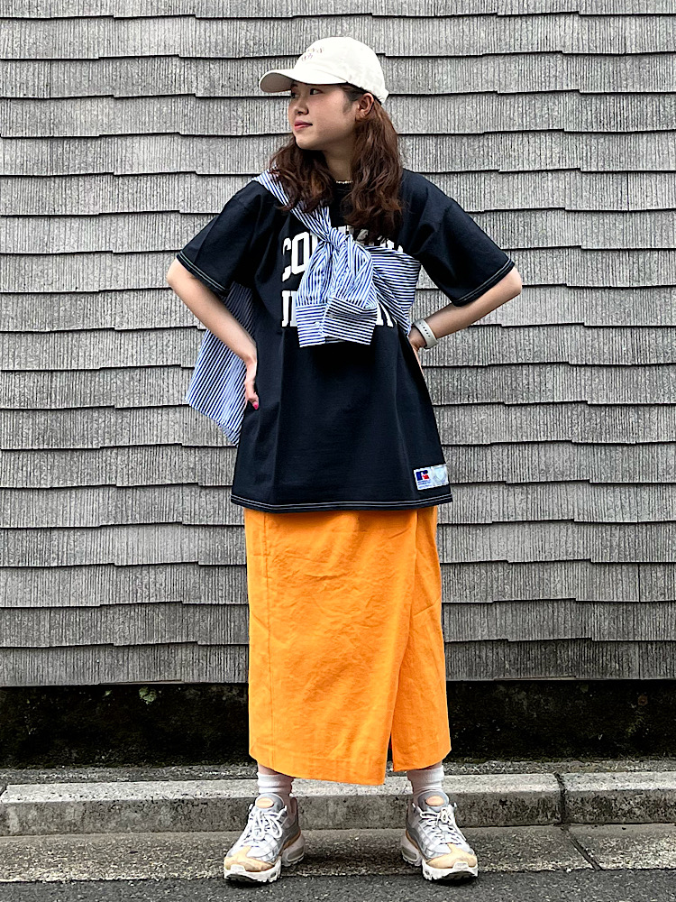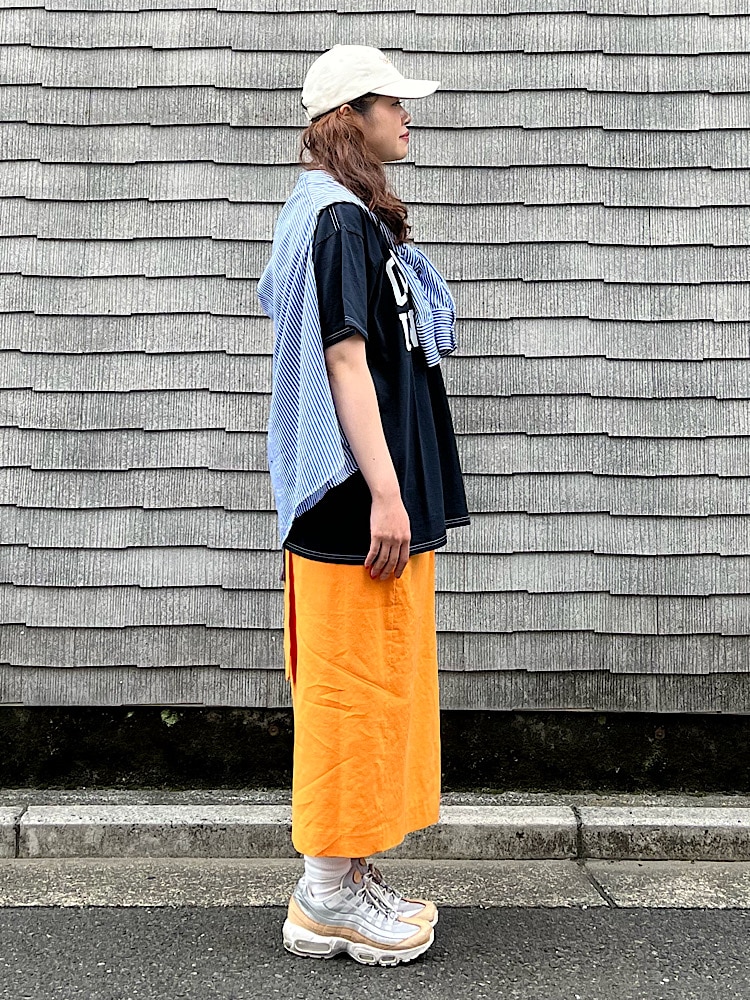 素材感/着心地:サラッとしてて着やすい。メンズのなのでオーバーサイズにゆるっと着れる
