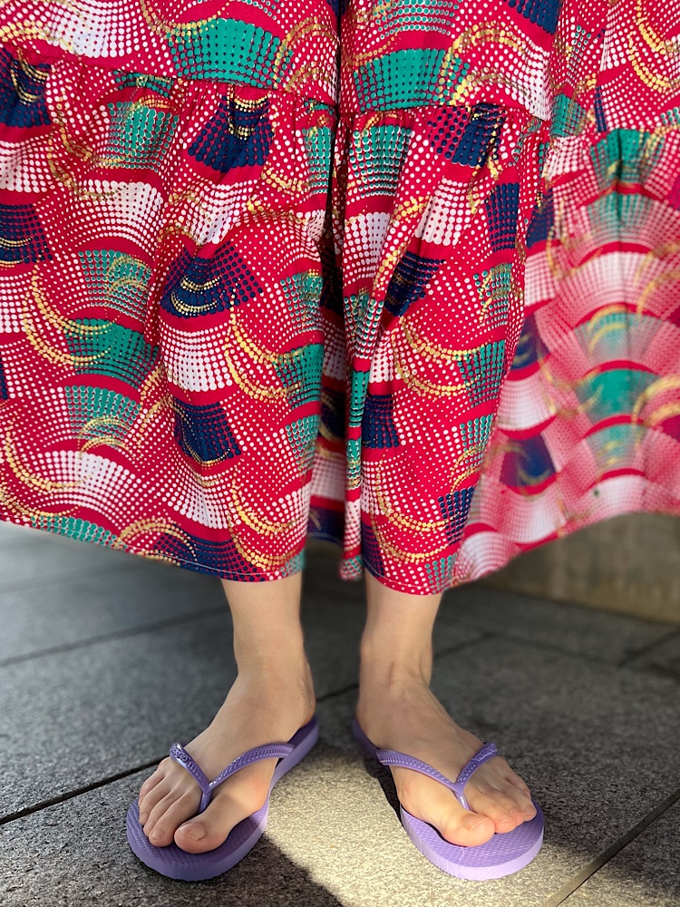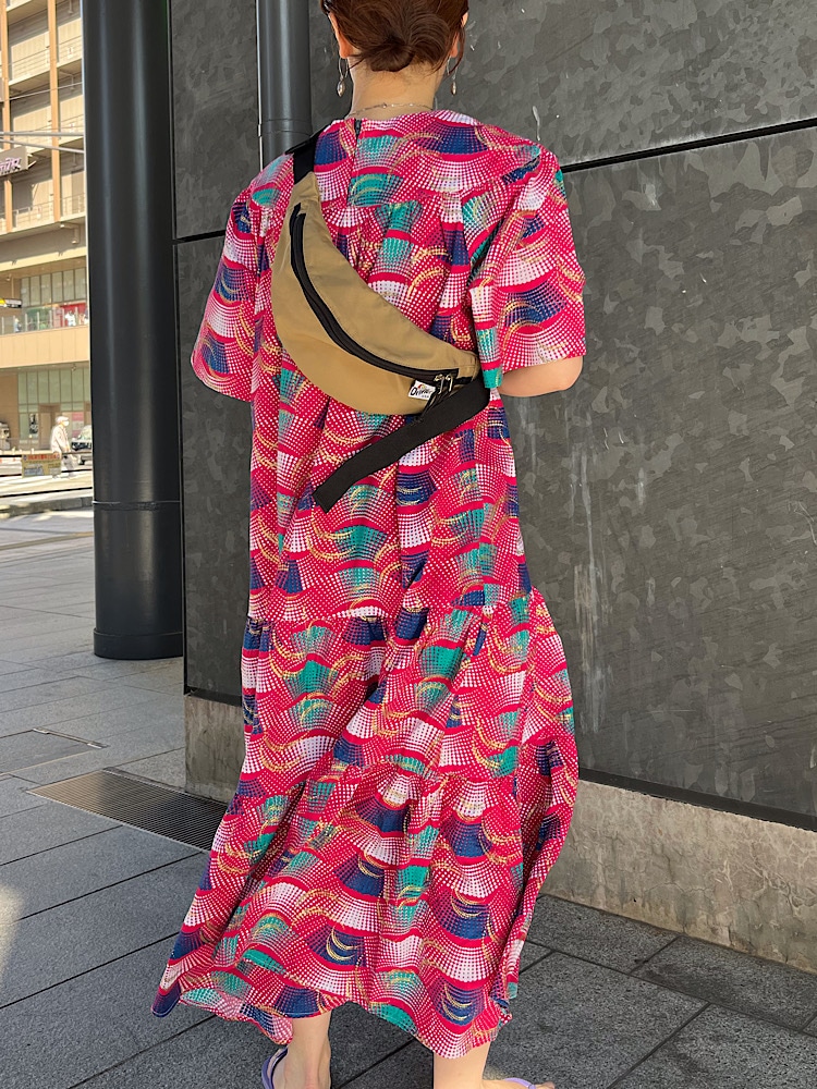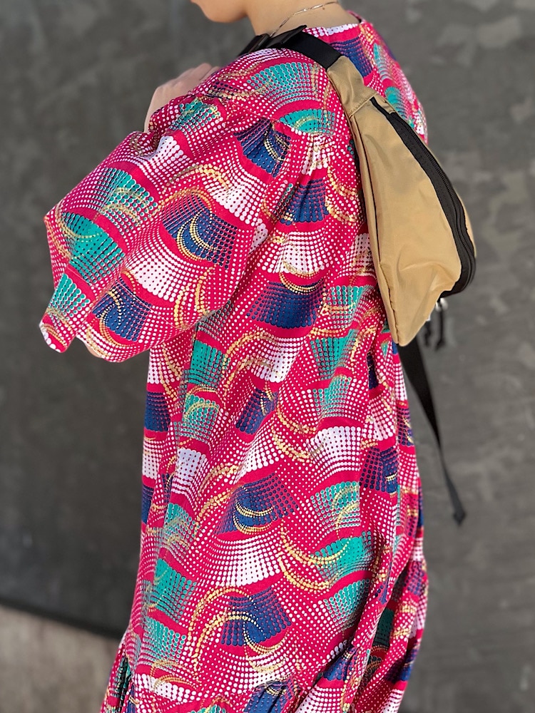 ポイント:華やかで存在感のあるワンピースです。袖口が広く全体的にゆったりしたシルエットなので着ていて楽ちんです。着丈が短めなのでパンツとレイヤードしても可愛いです。