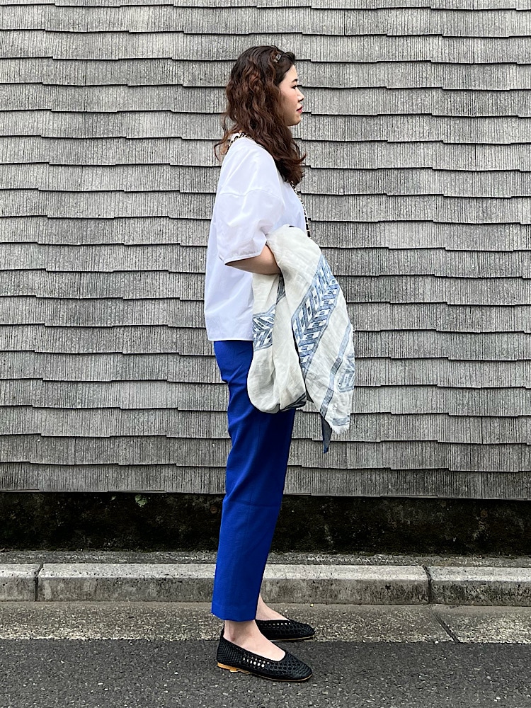素材感/着心地:形がキレイで、程よいハイウエストで脚長効果がある。少しストレッチも効いていて歩きやすい。