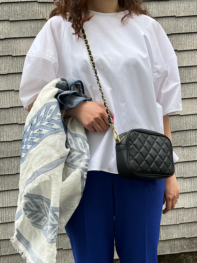 素材感/着心地:ほどよくボリュームがあり女性らしく着れるブラウス。着丈も少し短めでバランスをとりやすい