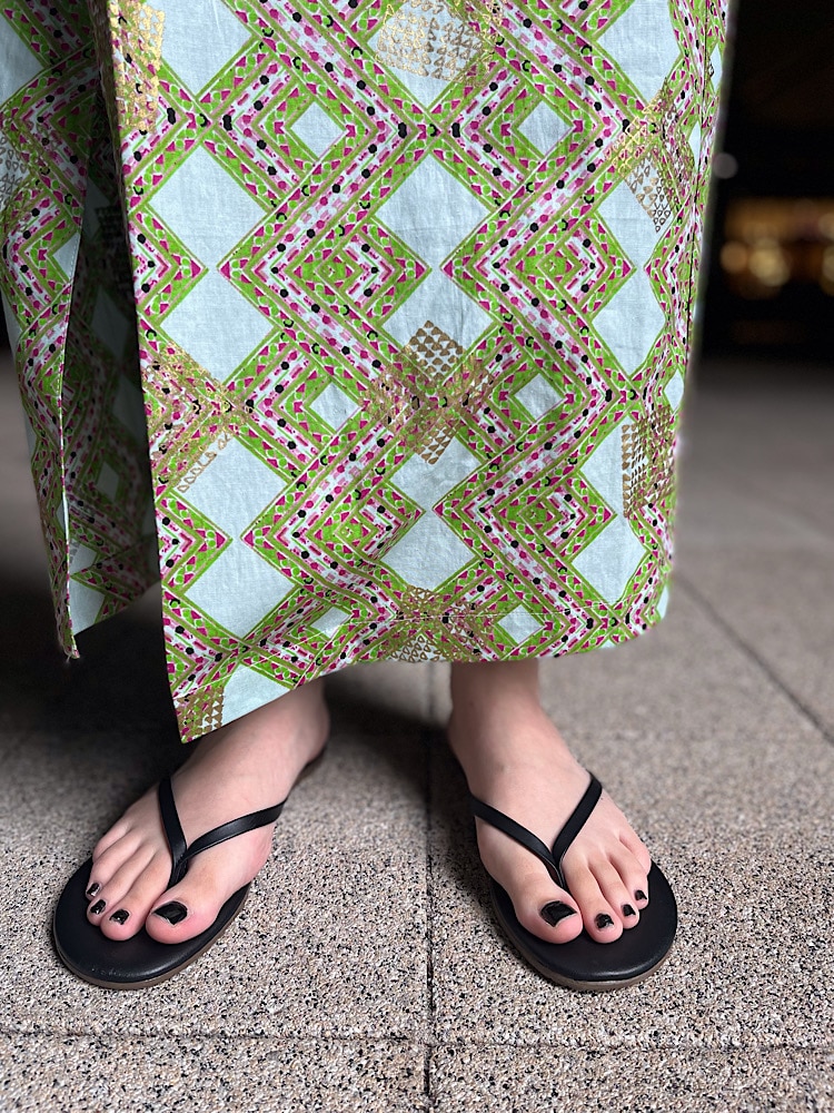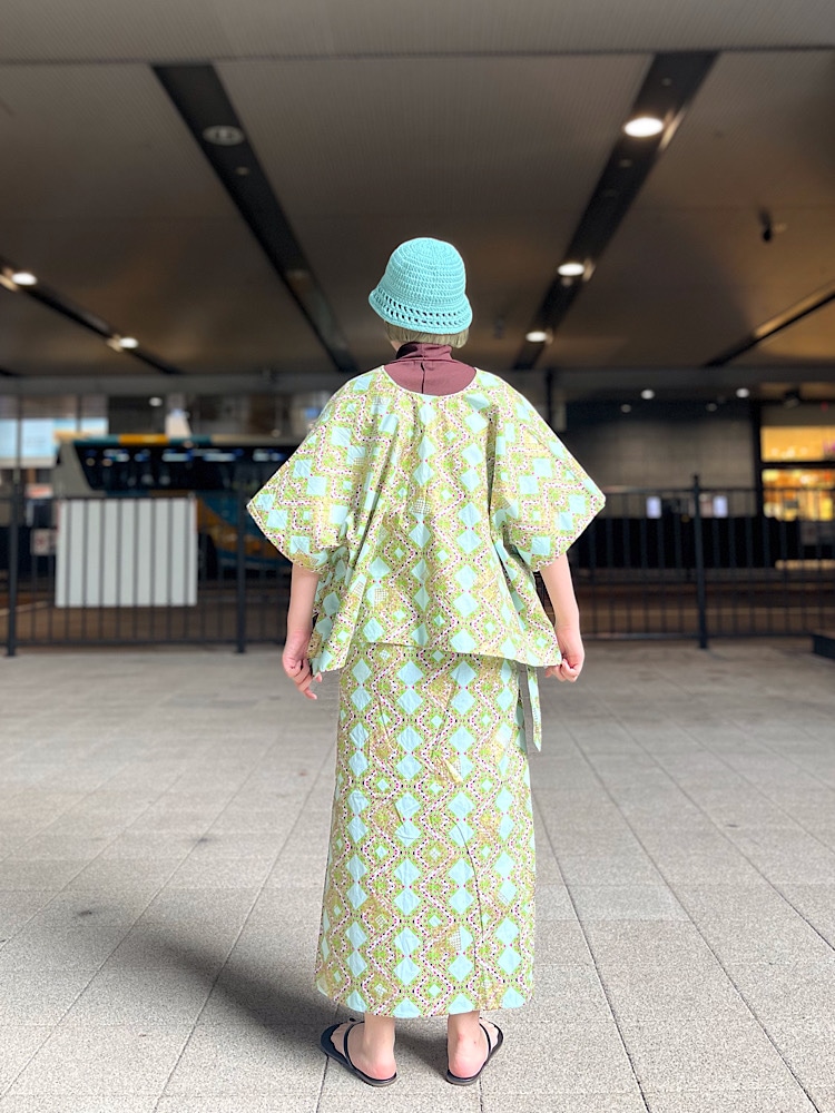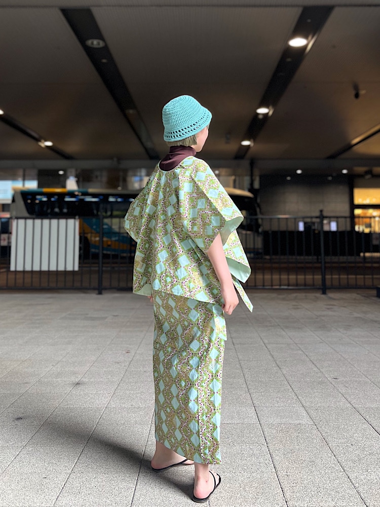 【素材感・着心地】トップスと同じ柄のスカートです。スリットが膝あたりまで入っているので動きやすいです。