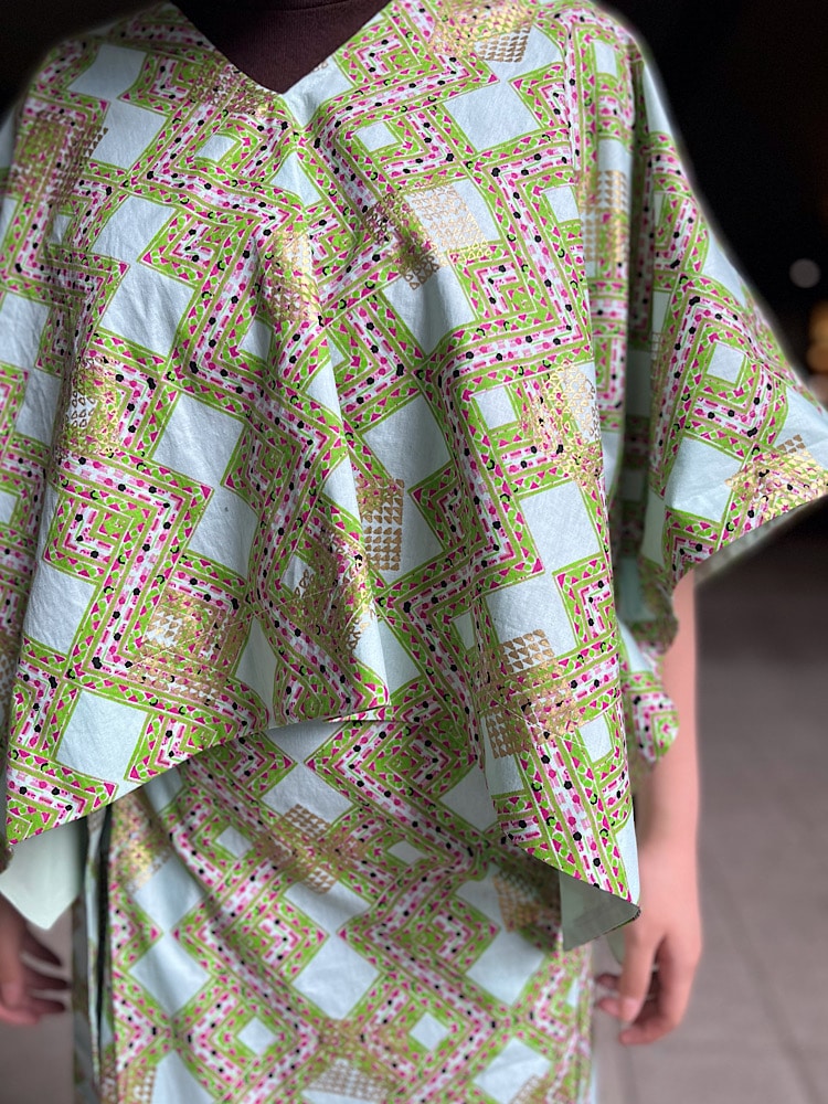 【素材感・着心地】夏らしい華やかな柄が印象的なトップスです。コットン100%で軽く風通しも良いので涼しく着て頂けます。