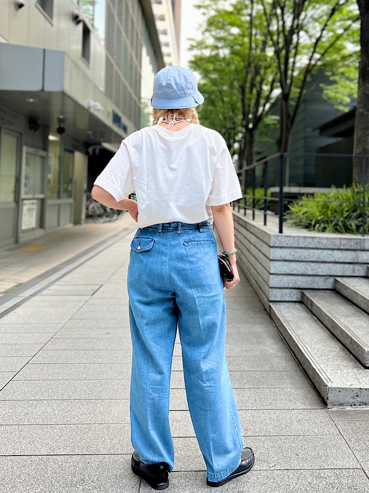 ・着こなしポイント : デニムとTシャツでカジュアルに仕上げましたが、足元はかっちりとしたローファーを合わせコントラストをつけました