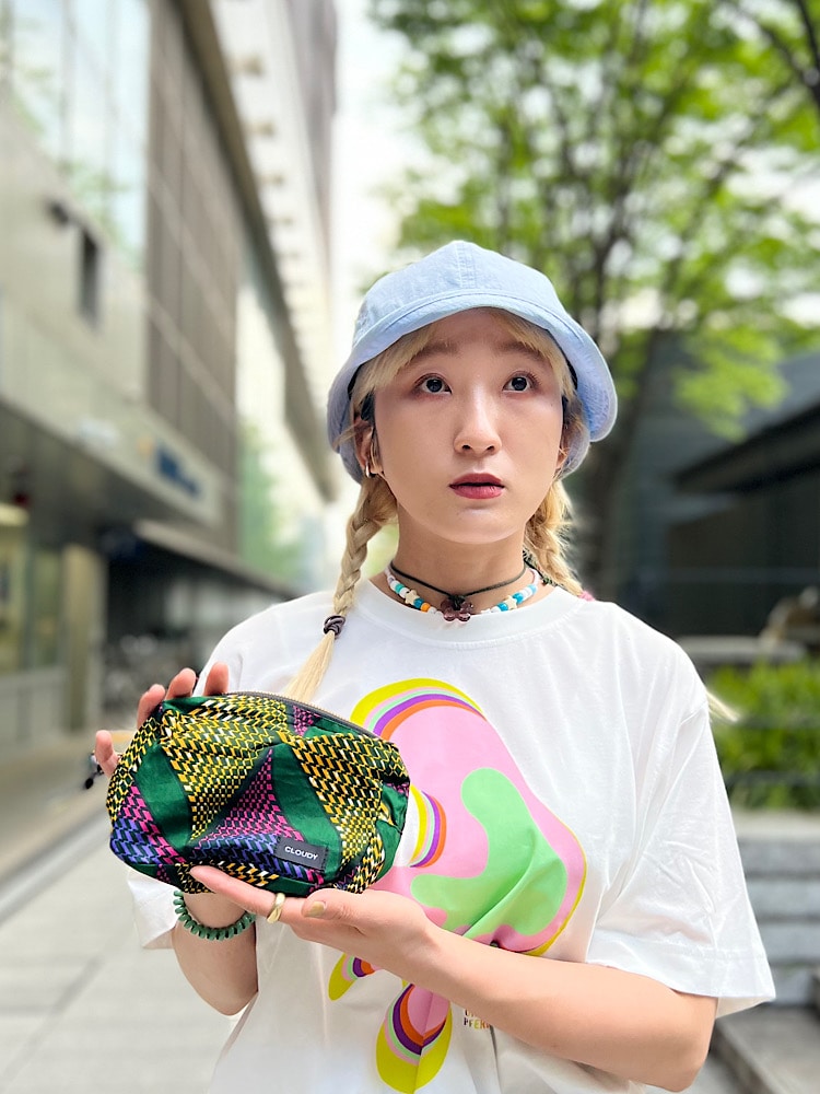 ・着こなしポイント : インスタイルですっきりとしたコーディネートにしてみました。柄がポップなのでメンズのハットやデニムで幼くなりすぎないようにしたのもポイントです!