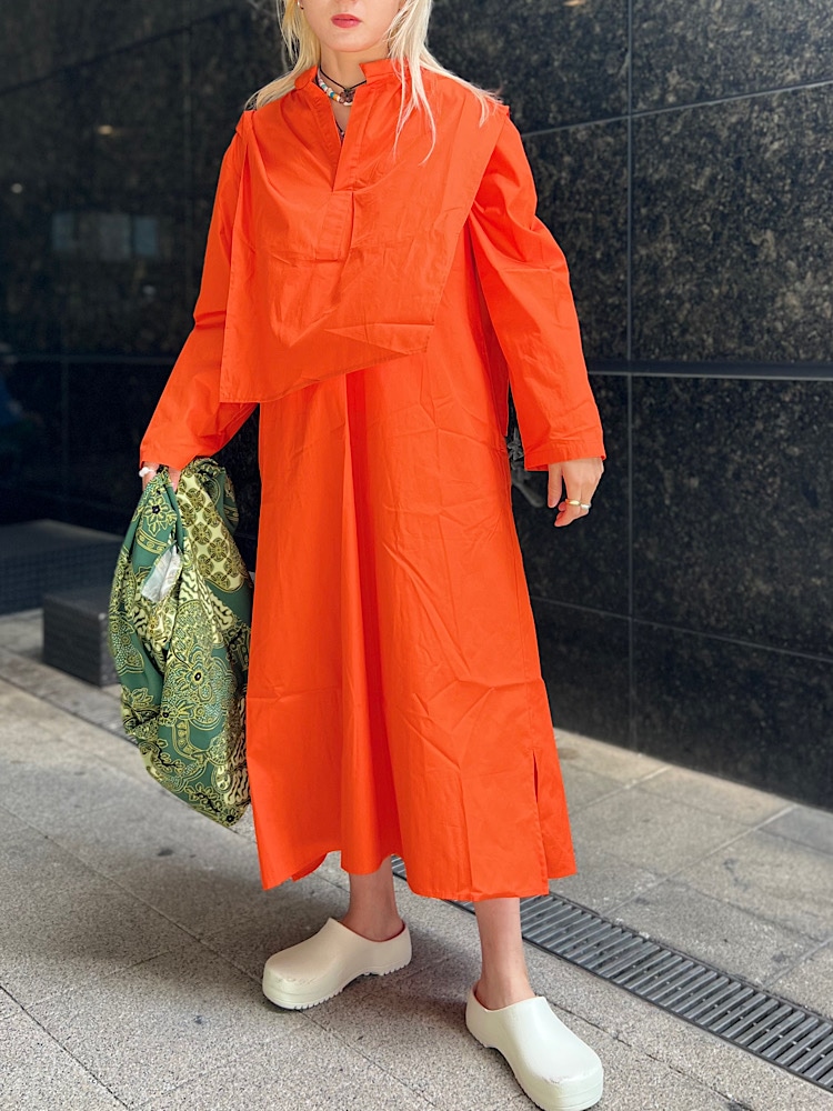 ・着こなしポイント : レイヤードはしないで1枚でさっぱりと着用するのがポイントです!ワンピースのみで華やかになりますよ
