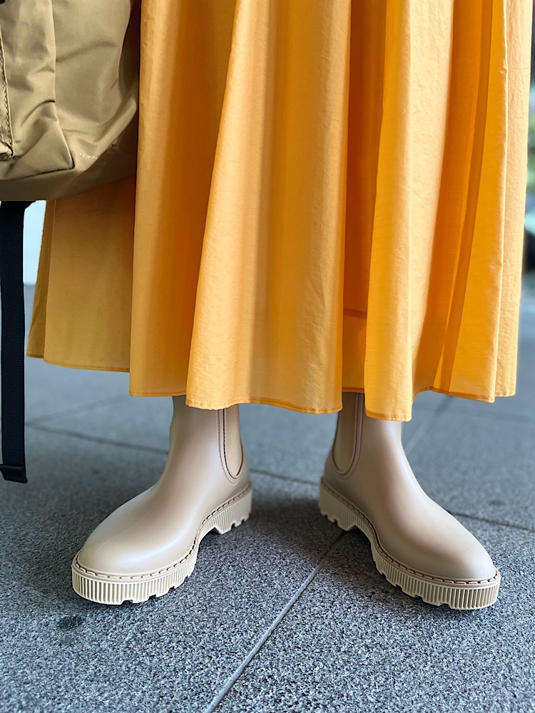 ポイント: レインブーツを見せたくて普段よりワンサイズ下げて着用しています。