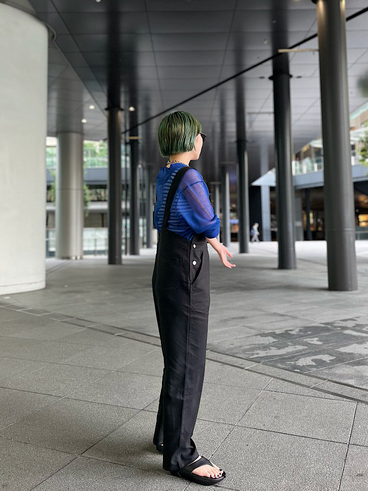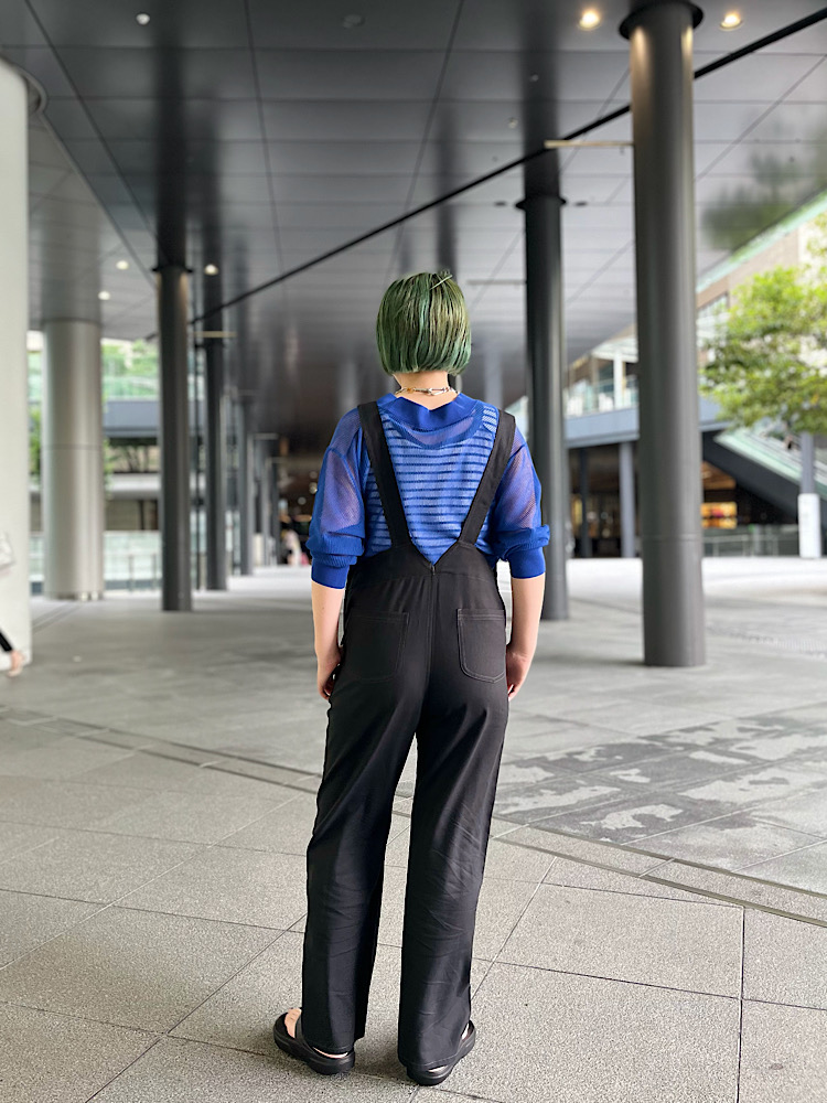 大人っぽいサロペットをメインにコーディネートを組みました。