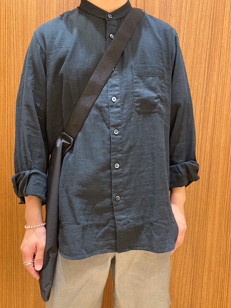 素材感:リネンとポリエステルの混合生地です。リネンの涼しげなテイストを残しつつポリエステルのハリの良さでシルエットも保てています。
