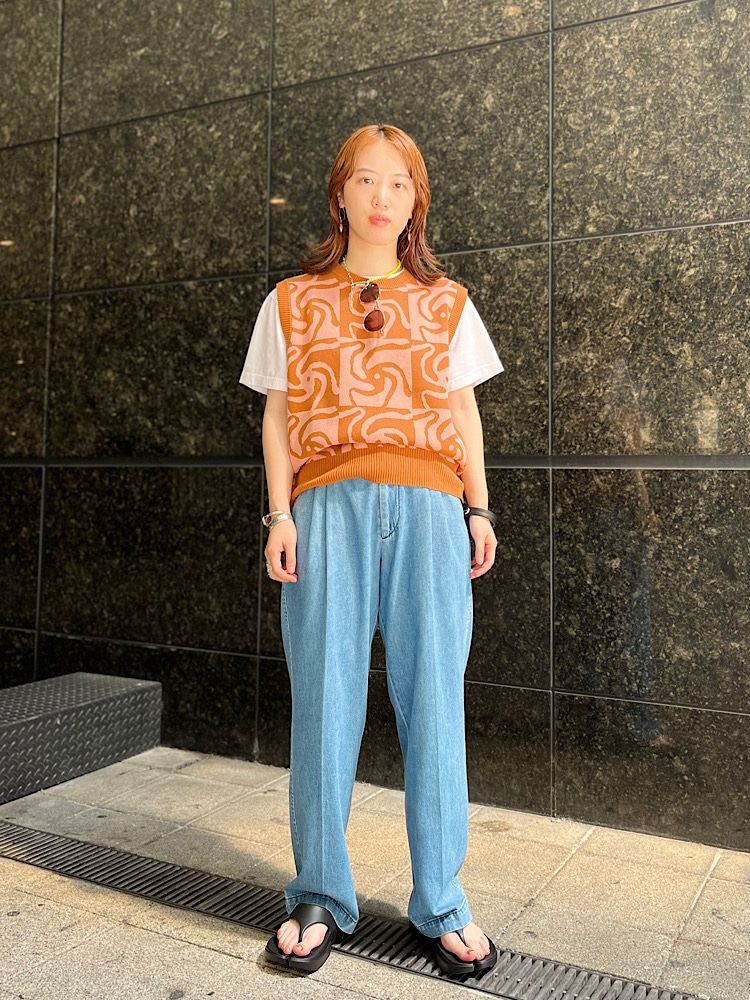 ポイント:メンズのボトムスでゆったりですが、ウィメンズの肩でもツータックでシルエット綺麗に履いて頂けます。