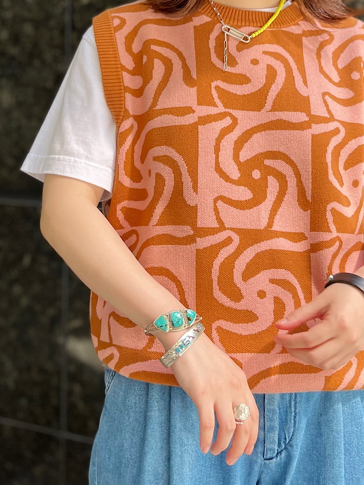 ポイント: 色味が可愛い風車模様のベストです。中に着るトップス次第でオールシーズン着て頂けると思います。
