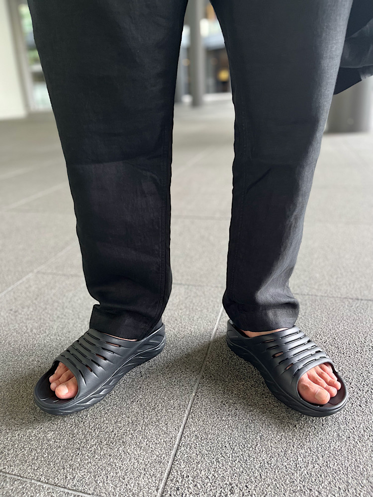 【素材感・着心地】ジャケットと同じく、少しゆったりとしていますがテーパードが程よく入っている為、セットアップとしてだけでなく、単品でも着やすいです。