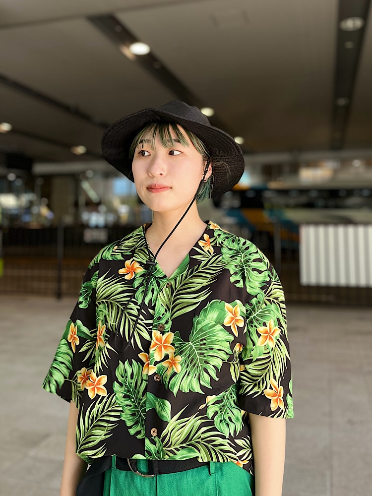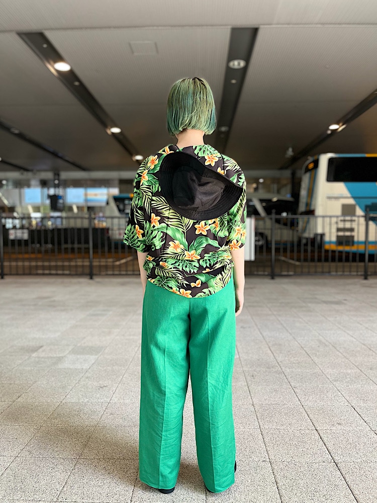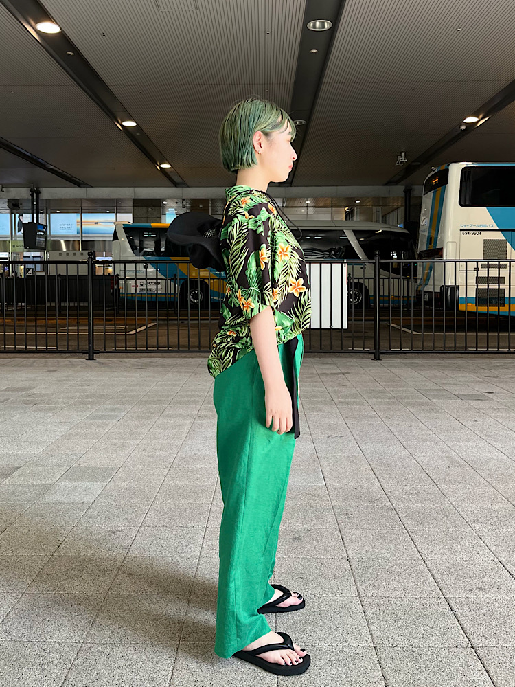 夏らしい鮮やかなアロハシャツでコーディネートを組みました。