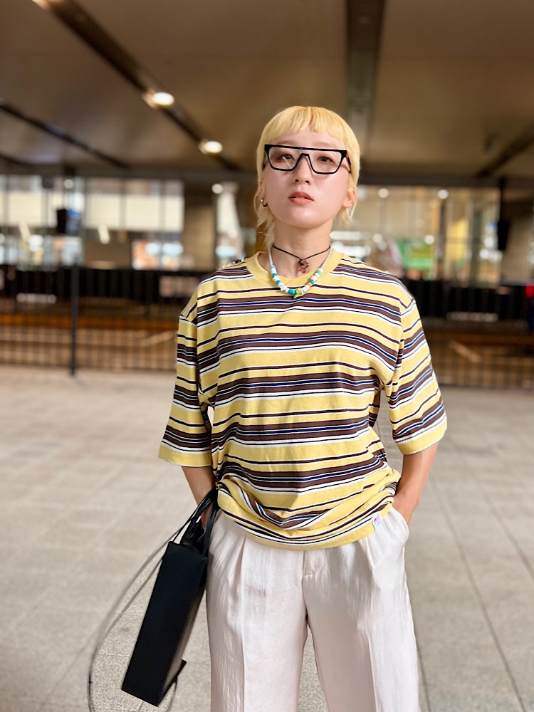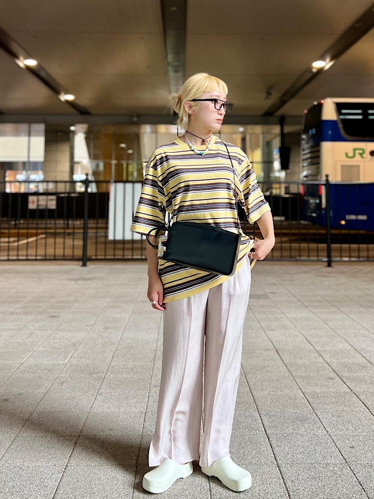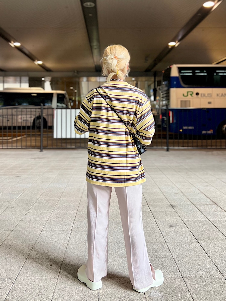 ・着こなしポイント : あえてボトムスはレディなカラーのものをチョイスしました!アウトスタイルでゆるりと着て頂くのがおすすめです。