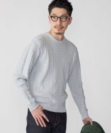 〔MEDIUM〕SHIPS:〈手洗い可能〉リネン/コットン TEXBRID(R) ランダムアラン クルーネックニット