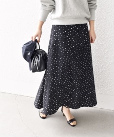 〔MEDIUM〕*〈手洗い可能〉ドット / 花柄 切替 セミフレア スカート ◇