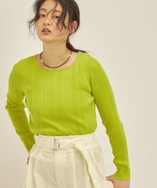 〔ONE SIZE〕〈手洗い可能〉フェルガナ コットン ランダム リブ スクエアネック プルオーバー ◇
