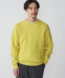 〔MEDIUM〕SHIPS:〈手洗い可能〉リネン/コットン TEXBRID(R) ランダムアラン クルーネックニット