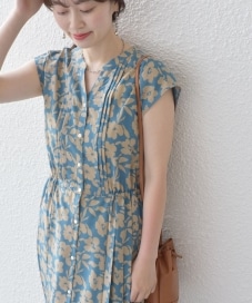 人気の花柄プリーツワンピースのフレンチスリーブ。さらっとした生地感で夏も涼しく着れそうです♪ブルーの花柄も派手すぎずおすすめです。