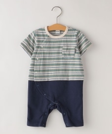 〔70〕SHIPS KIDS:リサイクルコットン ボーダー ロンパース