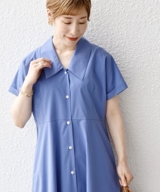 〔ONE SIZE〕SHIPS any:〈洗濯機可能〉フラットカラー Vネック フレア ワンピース