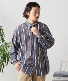 〔LARGE〕SHIPS any: オーバーサイズ レギュラーカラー チェック/ストライプ 長袖 シャツ◇