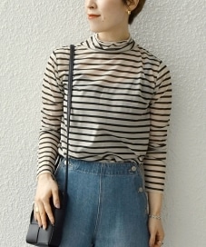 〔ONE SIZE〕SHIPS any:〈洗濯機可能〉シアー ボーダー タートルネック プルオーバー
