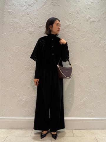 着心地:襟にファーがついてるライダースベストです。アームが取り外しができ、ジャケットとしても着用頂けます。レザーですが、強い印象になり過ぎず可愛くレザーアイテムを身につけることができます。