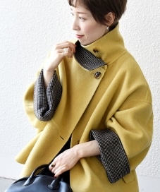 〔ONE SIZE〕SHIPS any: リバー スタンドカラー ポンチョ ショート コート