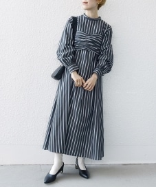 〔ONE SIZE〕SHIPS any:〈手洗い可能〉ストライプ ツイスト ビスチェ ワンピース