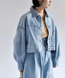 〔ONE SIZE〕quaranciel:〈洗濯機可能〉ボリュームスリーブ ショート デニム ジャケット
