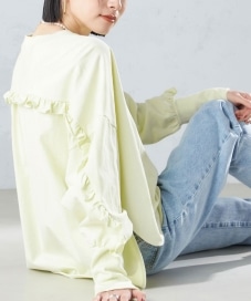 着心地:程よい厚みで着心地のよいカットソーです。フリルが甘くなりすぎず、デザイン性がありポイントです。袖のリブもキツさがなく少し長めになっているので女性らしさがあって一枚でもきまります。