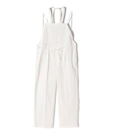 〔ONE SIZE〕PONTI:〈手洗い可能〉ホワイト デニム オールインワン ダブル エプロン