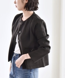 〔ONE SIZE〕quaranciel:〈手洗い可能〉ノーカラー クラシカル ジャケット カーディガン