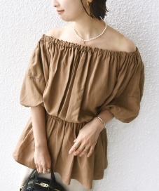 〔ONE SIZE〕【WEB限定】〈洗濯機可能〉麻混 2WAY オフショルダー ブラウス