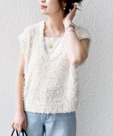 〔ONE SIZE〕【WEB限定】〈手洗い可能〉チュール フェザー Uネック 2WAY ニット ベスト