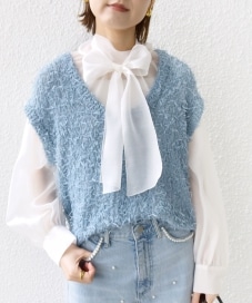 〔ONE SIZE〕【WEB限定】〈手洗い可能〉チュール フェザー Uネック 2WAY ニット ベスト