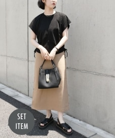 〔ONE SIZE〕quaranciel:〈洗濯機可能〉アイライン スカート × フレンチ TEE セット