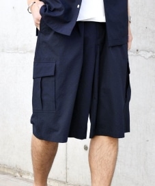 〔MEDIUM〕SHIPS any:〈撥水・軽量・ストレッチ〉SOLOTEX(R)シアサッカー ワイド カーゴ ショーツ(セットアップ対応)◇
