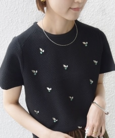 〔ONE SIZE〕【WEB限定】〈手洗い可能〉ハイツイスト コットン ビジュー カノコ ニット