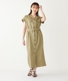 付属のベルトでウエスト部分をしめて着用すると小柄な方でもすっきりとした印象で着用できる。