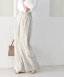 【素材感・着心地】スラックスタイプのリネンパンツは、しゃりっとした質感で、これから暑くなる季節にぴったりの一着です。